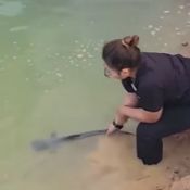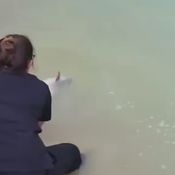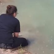 เมื่อเห็นดังนั้น เธอรีบลงไปในบ่อเพื่อนำปลาขึ้นมา พร้อมพยายามจุ่มน้ำเพื่อให้ปลาฟื้นตัว แต่สุดท้ายก็ไม่มีปฏิกิริยาตอบสนอง ทำเอาคนดูทั้งลุ้นทั้งสงสาร
