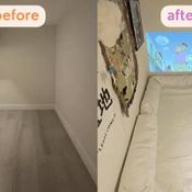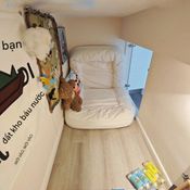 ตกแต่งตามใจฝัน: เธอเริ่มจากปูพรมหนานุ่ม ผนังรอบด้านแปะสติกเกอร์การ์ตูนที่ชอบ ช่วยให้พื้นที่แคบๆ ดูมีชีวิตชีวาและอบอุ่นขึ้น