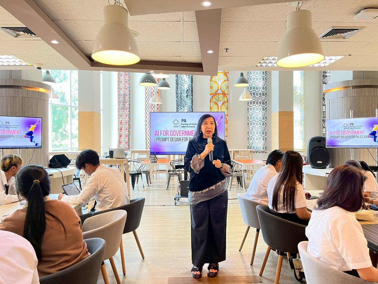โครงการดังกล่าวได้รับกระแสตอบรับอย่างล้นหลามจากการจัดกิจกรรมอย่างต่อเนื่องรวม 4 ครั้ง โดยมีนักศึกษาเข้าร่วมรับการพัฒนาทักษะแล้วกว่า 200 คน เนื้อหาของการอบรมถูกออกแบบมาให้ครอบคลุมตั้งแต่พื้นฐานไปจนถึงเทคนิคขั้นสูง โดยเฉพาะการออกแบบคำสั่งหรือ Prompt Design ที่มีประสิทธิภาพสำหรับงานภาครัฐโดยเฉพาะ รวมถึงการทำความรู้จักกับเครื่องมือ AI ที่หลากหลายและการลงมือฝึกปฏิบัติจริงในรูปแบบ Workshop ภายใต้การดูแลและให้คำแนะนำอย่างใกล้ชิดจากทีมคณาจารย์ผู้เชี่ยวชาญทั้งภายในและภายนอกคณะ นำโดย ดร.กฤตติกา เศวตอมรกุล รองคณบดีฝ่ายกิจการนักศึกษา ที่ร่วมผลักดันให้การเรียนรู้ในครั้งนี้เป็นไปอย่างมีประสิทธิภาพและตอบโจทย์การใช้งานจริง