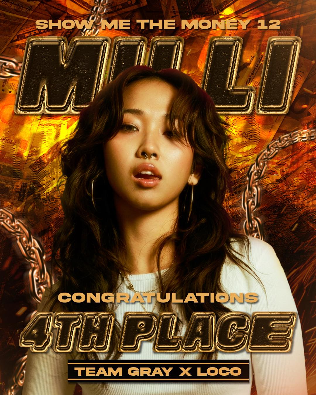 "มิลลิ" ทำถึงสุดๆ สร้างตำนานบทใหม่ คว้าที่ 4 รายการ Show Me The Money 12มิลลิ สร้างประวัติศาสตร์หน้าใหม่ คว้าอันดับ 4 Show Me The Money 12 ชนะใจแฟนคลับทั่วโลก