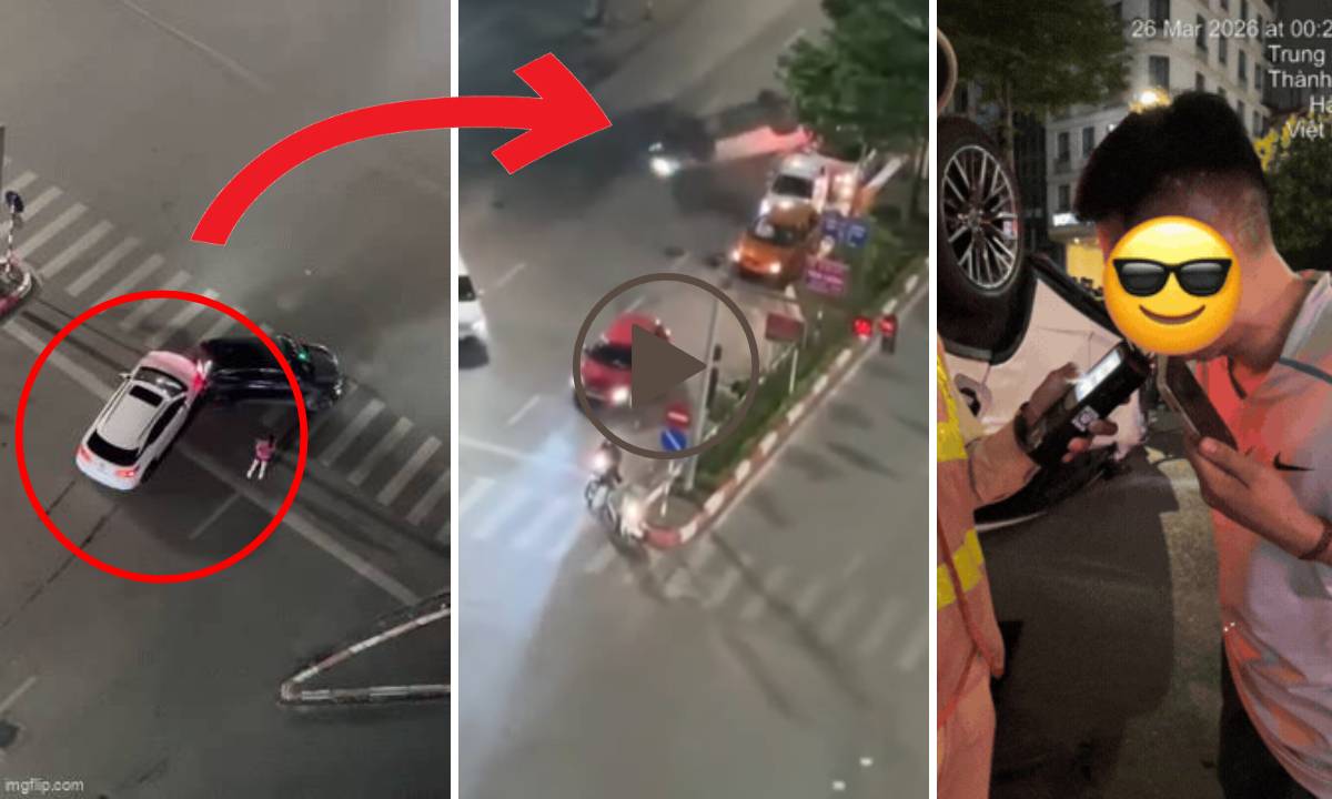 กลายเป็นประเด็นร้อนบนโลกโซเชียล เมื่อมีการแชร์คลิปวิดีโอจากมุมสูง เผยให้เห็นเหตุการณ์อุบัติเหตุระลอกใหญ่บนถนนตรุงกิ๊ญ (Trung Kính) กรุงฮานอย เมื่อคืนวันที่ 25 มีนาคมที่ผ่านมา โดยรถหรู Lexus RX350 พุ่งชนกวาดทั้งรถยนต์และรถจักรยานที่จอดติดไฟแดงจนสภาพยับเยิน