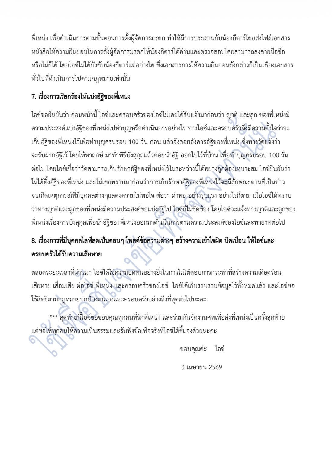 "ไอซ์" ภรรยาเหน่ง เหม่งจ๋าย เคลื่อนไหว ชี้แจงปมกระดูกสามีผ่านเฟซบุ๊กส่วนตัว