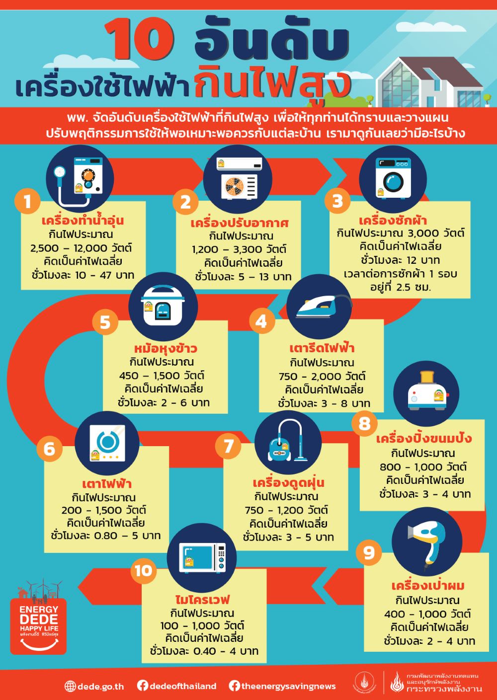 กระทรวงพลังงานเปิด 10 อันดับ เครื่องใช้ไฟฟ้ากินไฟสูง คำนวณมาให้แล้ว เสียเงินชั่วโมงละกี่บาท