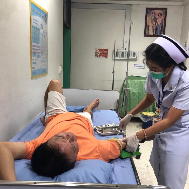 หลังอาการไม่ดีขึ้น จตุรงค์จึงรีบเดินทางไปพบแพทย์ที่โรงพยาบาลโพธารามทันที แพทย์ได้ทำการตรวจวินิจฉัยและฉีดยาเข้าที่เส้นเลือดบริเวณแขน เพื่อช่วยลดการหดเกร็งของกล้ามเนื้อกะบังลม ซึ่งเป็นสาเหตุหนึ่งที่ทำให้เกิดอาการสะอึก