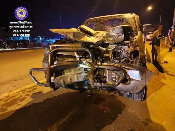 ความคืบหน้าล่าสุด วันที่ 14 เมษายน 2569 ผู้สื่อข่าวลงพื้นที่โรงพยาบาลเชียงคาน พบคนขับรถกระบะ อายุ 28 ปี ยังอยู่ระหว่างการรักษาอาการบาดเจ็บ และยังไม่สามารถให้ปากคำได้ โดยมีอาการสับสน พูดจาไม่รู้เรื่อง