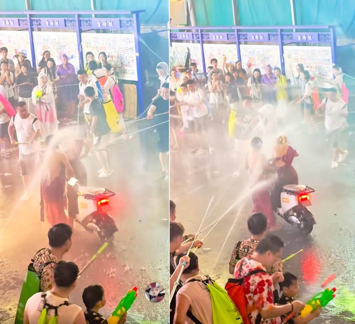 รายงานจากสื่อท้องถิ่นระบุว่า ในขณะที่หญิงสาวทั้งสองกำลังขี่รถจักรยานยนต์ไฟฟ้าผ่านบริเวณดังกล่าว กลุ่มชายฉกรรจ์หลายคนได้ใช้ปืนฉีดน้ำแรงดันสูงระดมฉีดใส่พวกเธอในระยะประชิด แม้หญิงสาวจะพยายามโบกมือปฏิเสธและแสดงอาการหวาดกลัวอย่างเห็นได้ชัด แต่กลุ่มคนดังกล่าวกลับไม่หยุดยั้ง ท่ามกลางเสียงโห่ร้องเชียร์ของผู้ที่อยู่ในเหตุการณ์ จนกลายเป็นความวุ่นวายที่ถูกวิพากษ์วิจารณ์อย่างหนักว่าเป็นการคุกคามมากกว่าการเล่นน้ำตามประเพณี