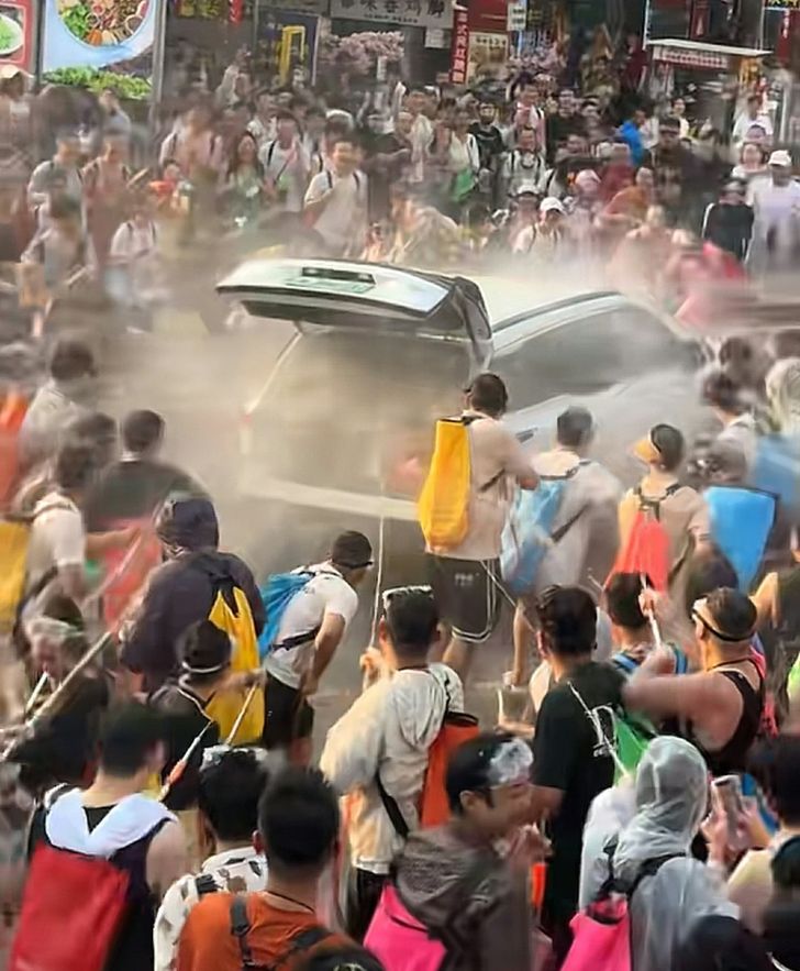 นอกจากกรณีของหญิงสาวทั้งสองแล้ว ยังมีอีกคลิปที่แสดงให้เห็นรถยนต์คันหนึ่งที่ขับผ่านบริเวณนั้น เจอกลุ่มคนรุมฉีดน้ำใส่จนถึงขั้นเปิดฝากระโปรงหลังรถแล้วระดมฉีดน้ำเข้าไปด้านใน จนรถกลายสภาพเป็น "รถน้ำท่วม" ในพริบตา