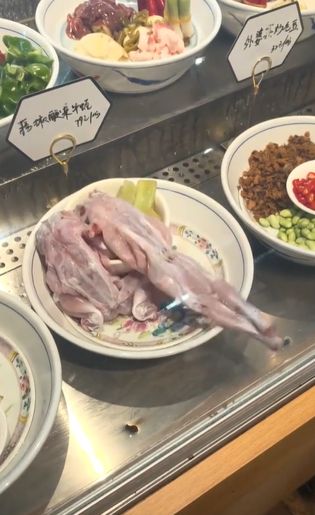 ในคลิปหนึ่งจะเห็นกบที่ถูกเตรียมเป็นวัตถุดิบสำหรับเมนูหม่าล่า โดยสภาพถูกถลกหนังและควักเครื่องในออกแล้ว แต่ยังมีการขยับขาและลำตัวอย่างชัดเจน