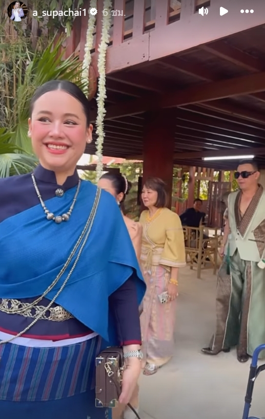 สวยแพ็คคู่! "แคท เสปอร์บันด์" พี่สาวญาญ่า สวมชุดไทยห่มสไบ ออร่าสะกดตาในวันวิวาห์น้องสาว