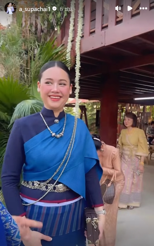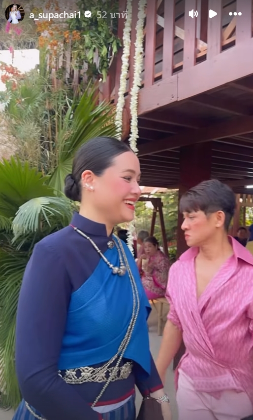 บอกเลยว่า "สวยกินกันไม่ลง!" พี่แคทในชุดไทยห่มสไบสีน้ำเงินดูหวานละมุนและอ่อนช้อยมาก รอยยิ้มที่สดใสสะท้อนถึงความดีใจอย่างที่สุดที่ได้เห็นน้องสาวสุดที่รักเป็นฝั่งเป็นฝา หลายคนที่เห็นภาพต่างคอมเมนต์เป็นเสียงเดียวกันว่า พี่น้องคู่นี้ดีเอ็นเอความสวยเค้าแรงจริงๆ สวยกันไปคนละแบบ แต่ให้ความรู้สึกที่อบอุ่นและแพงมากในเวลาเดียวกัน