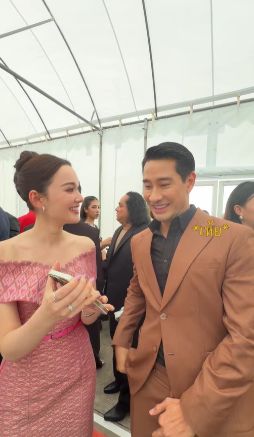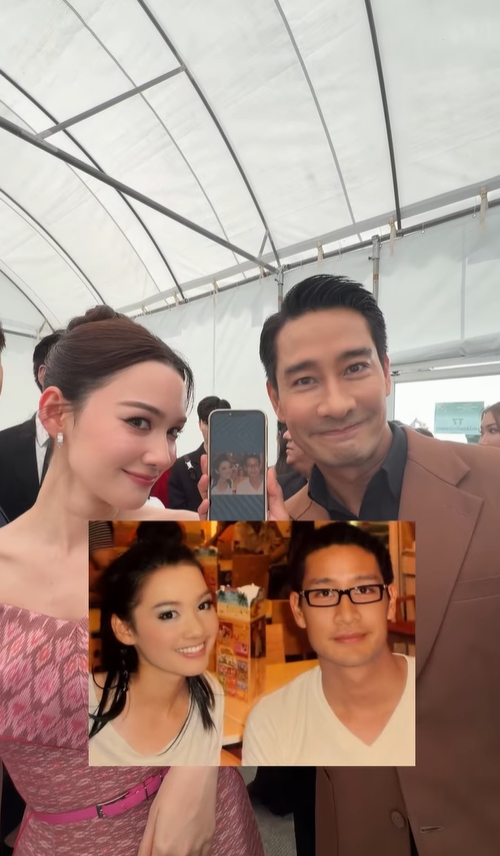 แต่ภาพที่สร้างความฮือฮาไม่ใช่ภาพคู่กับแฟนหนุ่ม แต่เป็นภาพคู่กับพระเอกรุ่นพี่อย่าง ป้อง ณวัฒน์