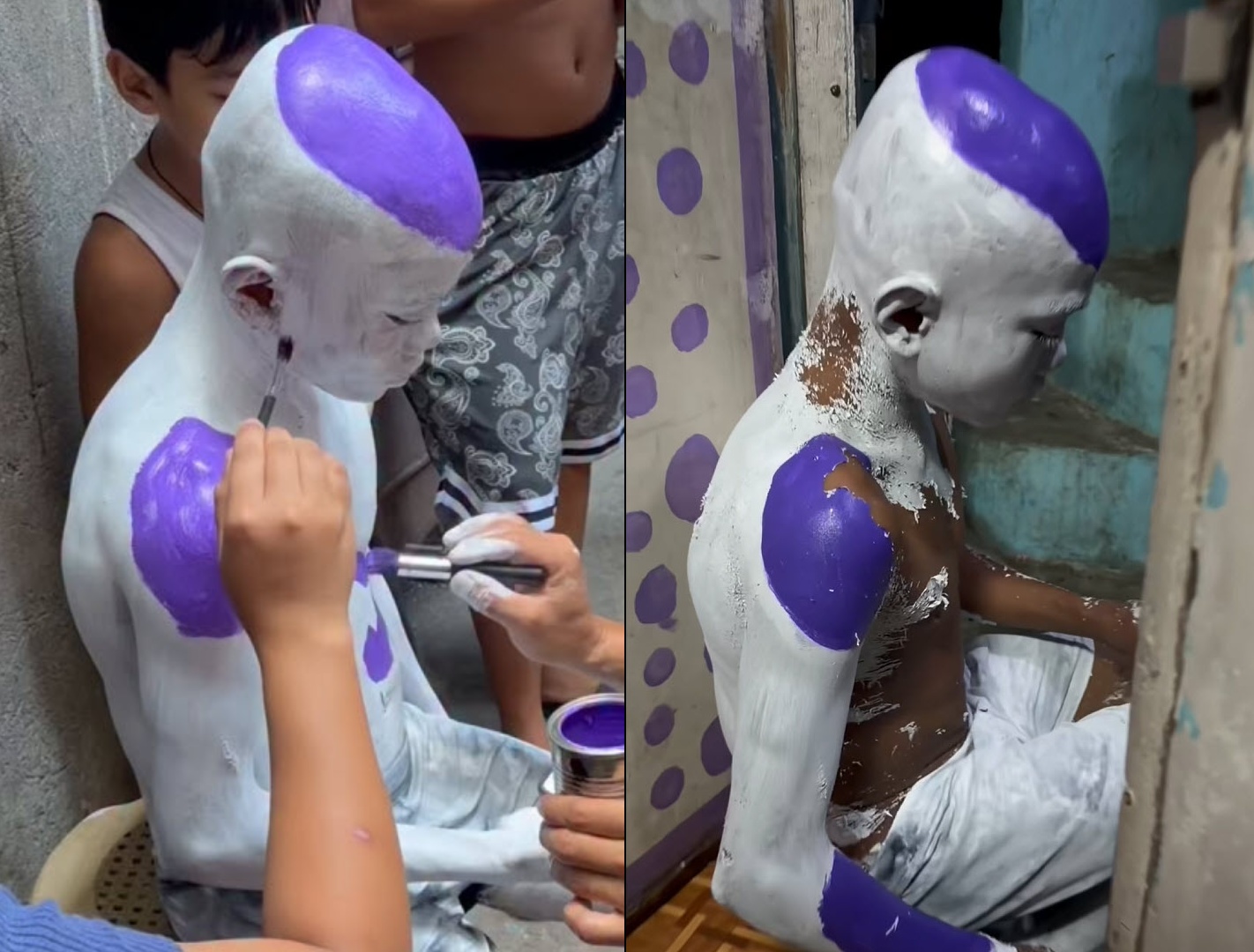 เด็กชายคอสเพลย์ตัวละคร "ฟรีเซอร์" ในดราก้อนบอล ทาสีทั้งตัวหัวจรดเท้า สุดท้ายงานหยาบ "ล้างไม่ออก"