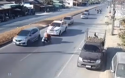 หลบทั้งถนน! จยย.ย้อนศรพุ่งมาเลนกลาง จบไม่สวย ประสานงาเก๋ง ร่างกระเด็น