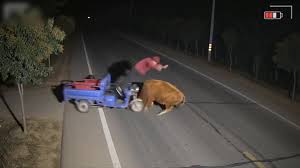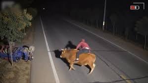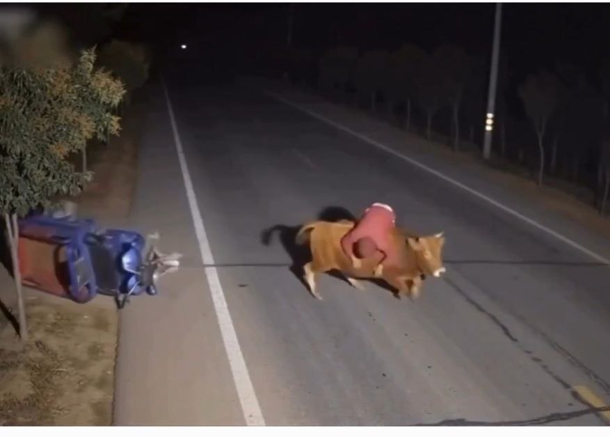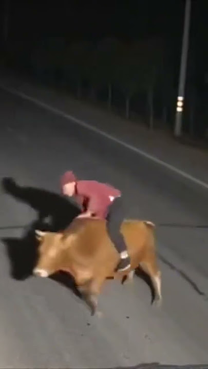 จังหวะอะไรเนี่ย?! ยายขี่รถอยู่ดีๆ รู้ตัวอีกทีขี่วัว คลิปปั่นจัดๆ การ "ลงจอด" ที่พีกที่สุดในโลกรถพังไม่ว่า... แต่ยายมาอยู่บนนี้ได้ไง?!