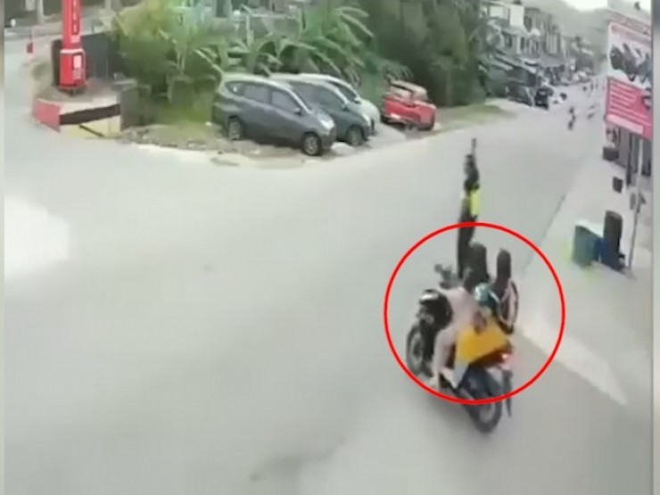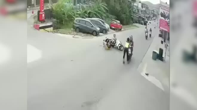 ความงุนงงยังไม่จบเพียงเท่านี้ เพราะในขณะที่ทุกคนกำลังอึ้งกับการเลี้ยวของนินจาสาว ชายคนที่ยืนโบกขอทางอยู่กลางถนนก็ดันไปมีจังหวะปะทะกับรถจักรยานยนต์อีกคันหนึ่งที่วิ่งผ่านมาพอดี ทำให้สถานการณ์บริเวณนั้นกลายเป็นความชุลมุนวุ่นวายไปในพริบตา