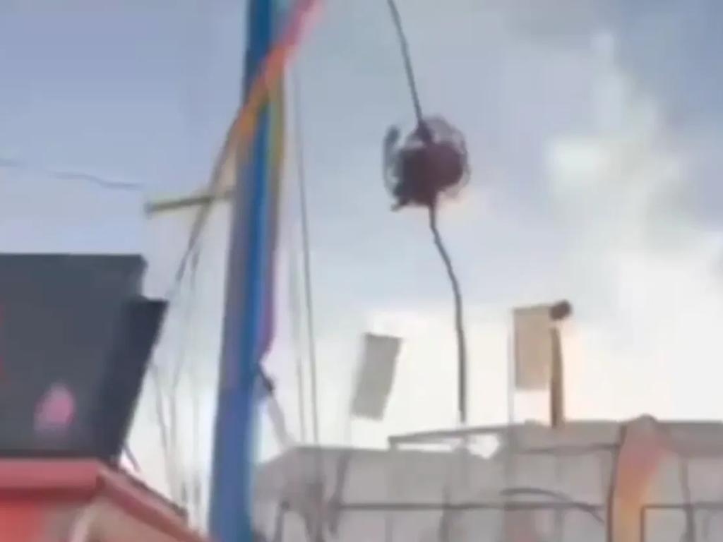 นาทีชีวิต! เครื่องเล่นสลิงขาด เหวี่ยงกระแทกเสา คนเล่นค้างกลางเวหา 90 เมตร (มีคลิป)