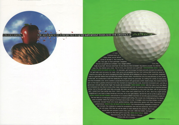 เรื่องของการ "ไดรฟ์" นั้นถือเป็นสิ่งสำคัญและยากสำหรับมือใหม่ที่จะทำให้แม่นยำได้ ดังนั้นในปี 1991 บริษัท Hoffman York & Compton ก็ได้เปิดตัวลูกกอล์ฟที่ชื่อว่า "Aero" และเคลมว่าปัญหาของเหล่ามือใหม่จะหมดไปเพราะนี่คือลูกกอล์ฟที่แม่นยำที่สุดในโลก