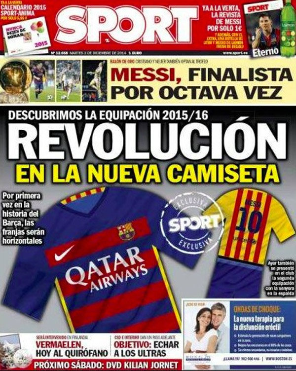 "สปอร์ต" สื่อชื่อดังสเปน ตีข่าวนี้ไปทั่วสเปน กับชุดแข่งใหม่บาร์ซ่า