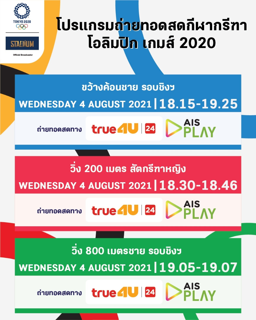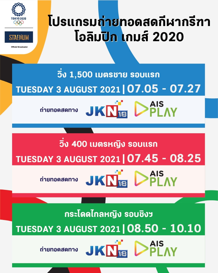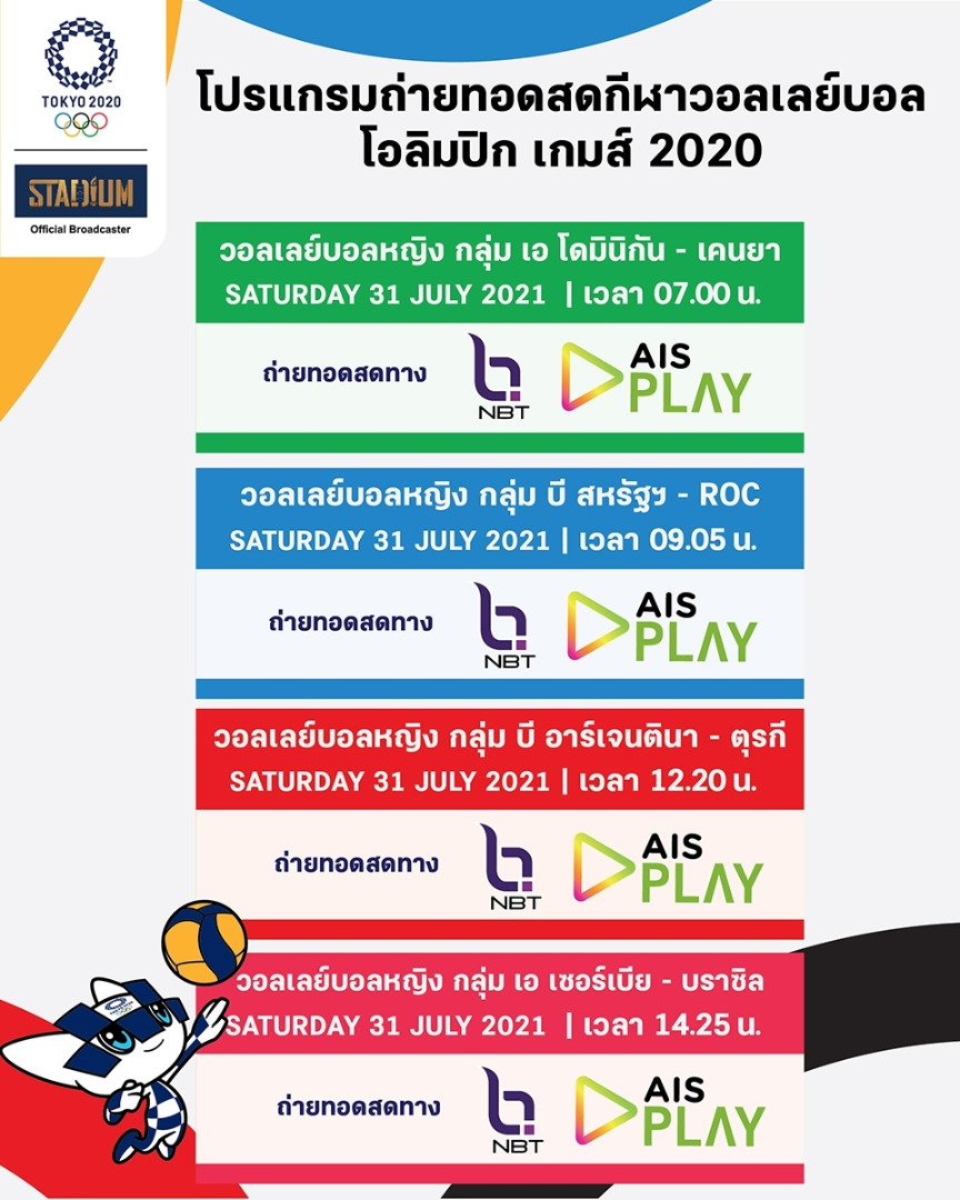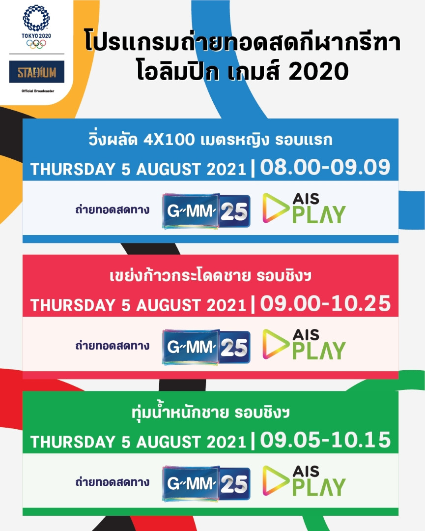 อัปเดตโปรแกรมถ่ายทอดสด โอลิมปิก เกมส์ 2020เช็กโปรแกรมถ่ายทอดสดการแข่งขันกีฬาทุกประเภทในโอลิมปิก เกมส์ โตเกียว 2020 ได้ที่นี่ เราจะอัพเดตครบทั้ง 33 ชนิดกีฬา