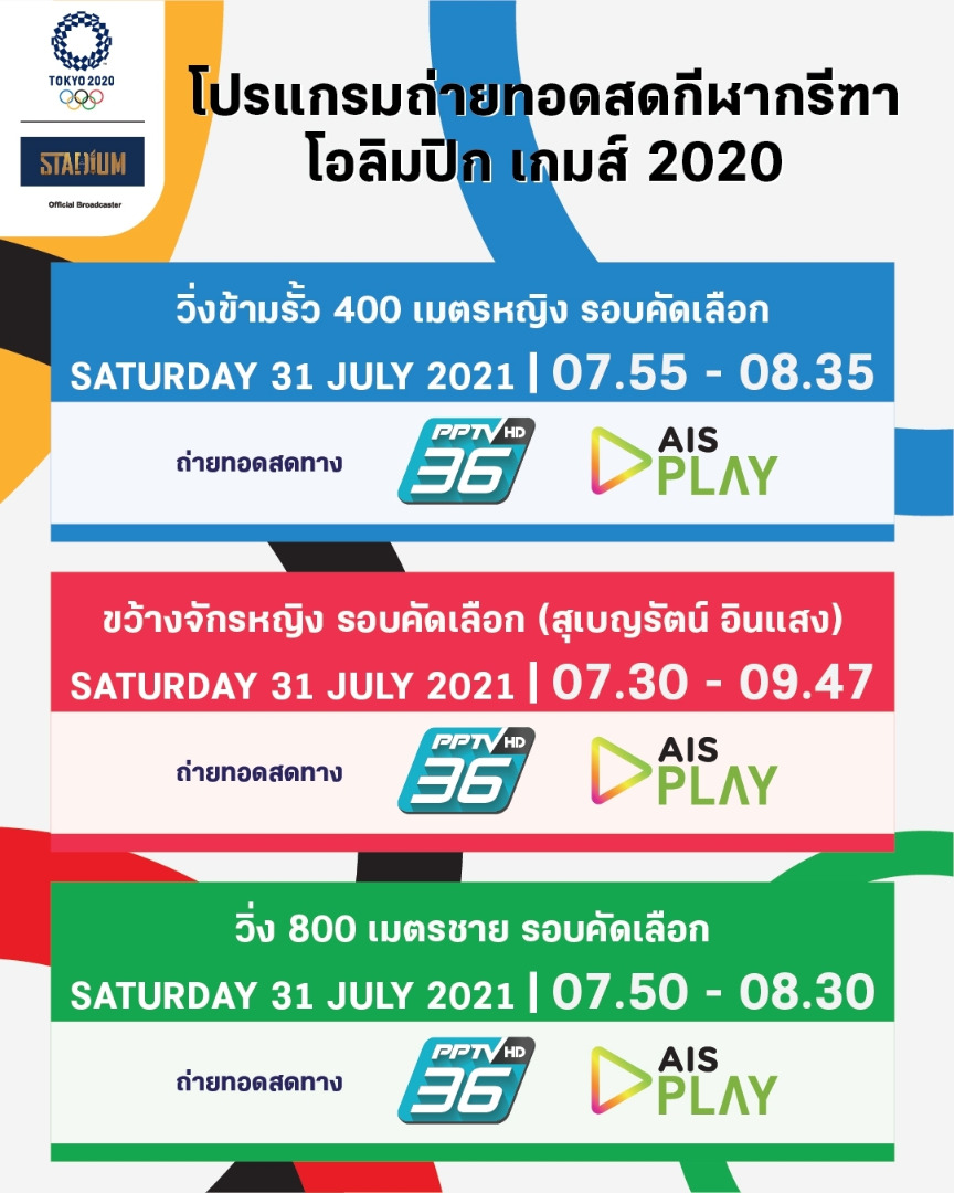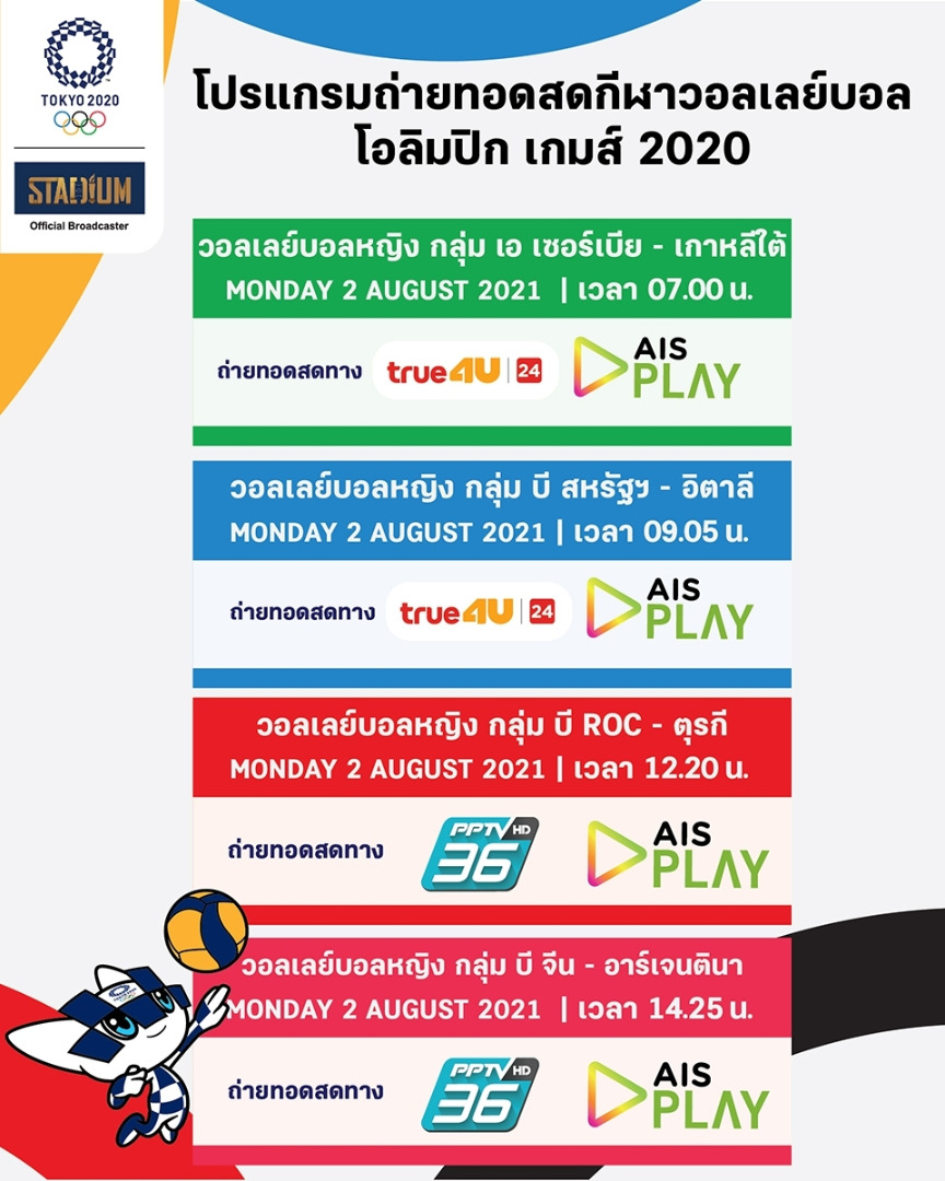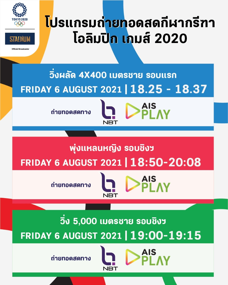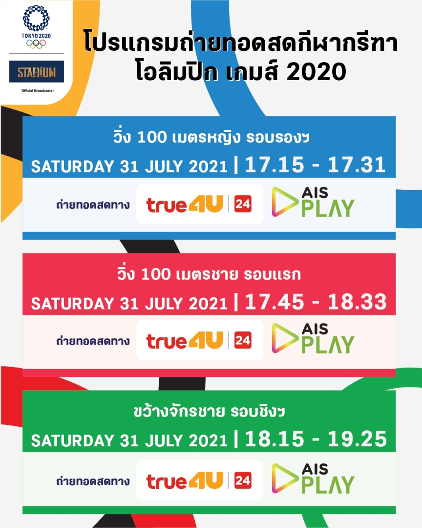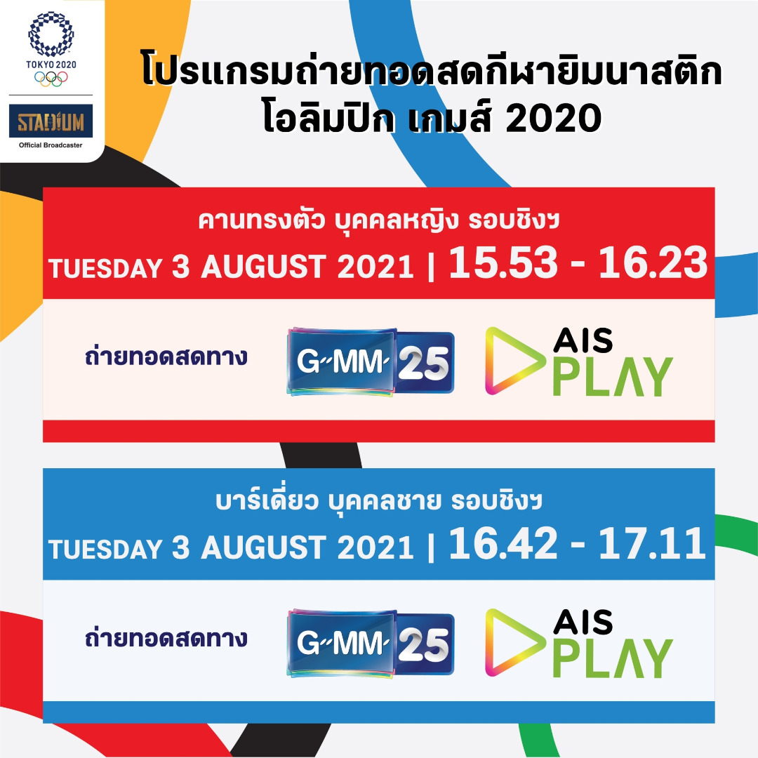 อัปเดตโปรแกรมถ่ายทอดสด โอลิมปิก เกมส์ 2020เช็กโปรแกรมถ่ายทอดสดการแข่งขันกีฬาทุกประเภทในโอลิมปิก เกมส์ โตเกียว 2020 ได้ที่นี่ เราจะอัพเดตครบทั้ง 33 ชนิดกีฬา