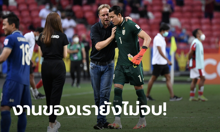 "ส่วน เจนภพ โพธิ์ขี เป็นนักเตะที่ทุ่มเทและซ้อมอย่างหนัก แต่ว่าเรายังไม่ได้คิดถึงการส่งนักเตะทุกคนลงสนาม เพราะหน้าที่ของเรายังไม่จบ เราต้องมีสมาธิและเป้าหมายที่ชัดเจน และเราต้องทำผลงานให้ดีที่สุดในเกมที่สองตามเป้าหมาย เราต้องโฟกัสที่เกม เพื่อไม่ให้อินโดนีเซียมีโอกาสกลับมาได้ เพราะฟุตบอลทั่วโลก ไม่ว่าจะในระดับสโมสรต่างก็เคยกลับมาได้หลังจากตามหลังหลายประตู เราจะไม่ประมาท เราจะเล่นอย่างเต็มที่ด้วยสมาธิในเกมที่สอง"