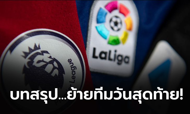 สรุปดีลน่าสนใจ ที่ได้รับการยืนยันอย่างเป็นทางการ ในวันสุดท้ายของตลาดซื้อขายนักเตะ ที่เพิ่งปิดตัวลงไปเมื่อเวลา 06.00 น. ตามเวลาประเทศไทย
