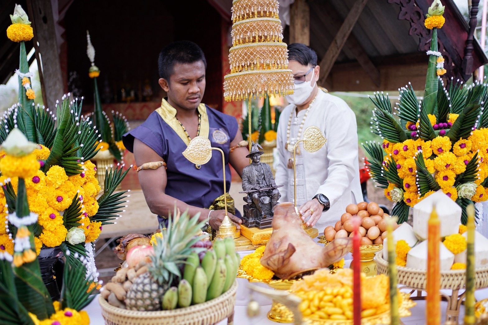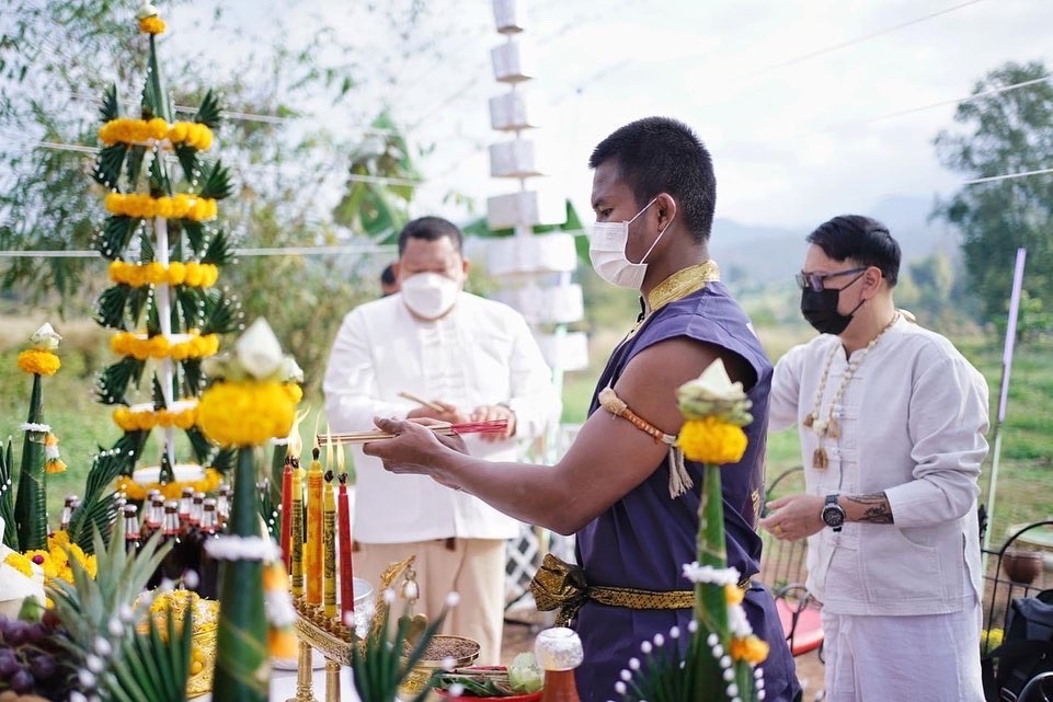 "ดำดอทคอม" บัวขาว บัญชาเมฆ นักชกมหาชนขวัญใจชาวไทย ได้ถือฤกษ์งามยามดีทำพิธีบวงสรวงยกศาลพระเจ้าเสือบรมครูแห่งมวยไทย ณ ค่ายมวยบัญชาเมฆ อ.แม่แตง จ.เชียงใหม่ เมื่อวันเสาร์ที่ 5 กุมภาพันธ์ 2565