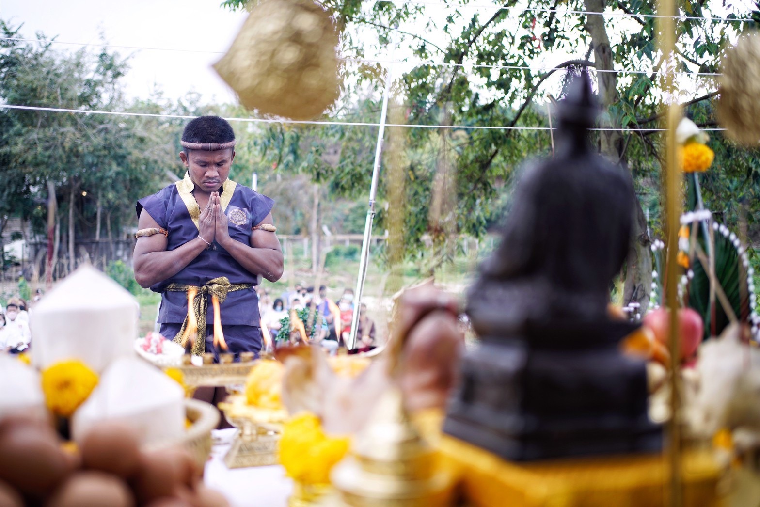พร้อมกันนี้ถือเป็นโอกาสอันดีที่ นักกีฬาคิกบ๊อกซิ่งทีมชาติไทย ที่เดินทางไปเก็บตัวฝึกซ้อมที่ค่าย เพื่อแข่งขันรายการกีฬาซีเกมส์ครั้งที่ 31 ที่ประเทศเวียดนาม ได้เข้าร่วมพิธีบวงสรวงในครั้งนี้ด้วย