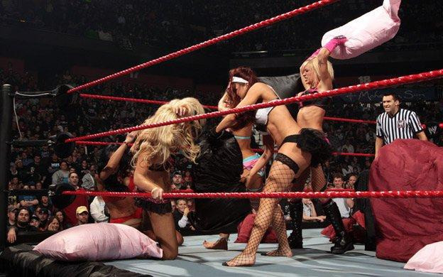คนที่คิดเรื่องนี้คือ วินซ์ แม็คแมน ซีอีโอ ของ WWE สมาคมมวยปล้ำอาชีพที่โด่งดังที่สุดในโลก วินซ์ ได้นำเอาการแข่งขันฟาดหมอนมาผนวกเข้าธีมชุดนอน โดยให้เหล่าดีว่า (นักมวยปล้ำหญิง) ของ WWE ลงแข่งขันกันโดยเป็นการต่อสู้แบบยัดนักมวยปล้ำหญิงเยอะ ๆ ลงไปในเวทีเดียวกัน ให้ทุกคนสู้กันแบบ Survival ใครรอดเป็นคนสุดท้ายจะเป็นผู้ชนะ ง่าย ๆ แค่นั้น