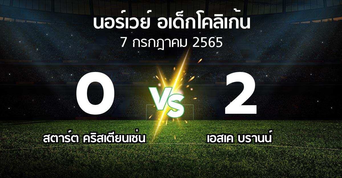 ผลบอล : สตาร์ต คริสเตียนเซ่น vs เอสเค บรานน์ (นอร์เวย์-อเด็กโคลิเก้น 2022)
