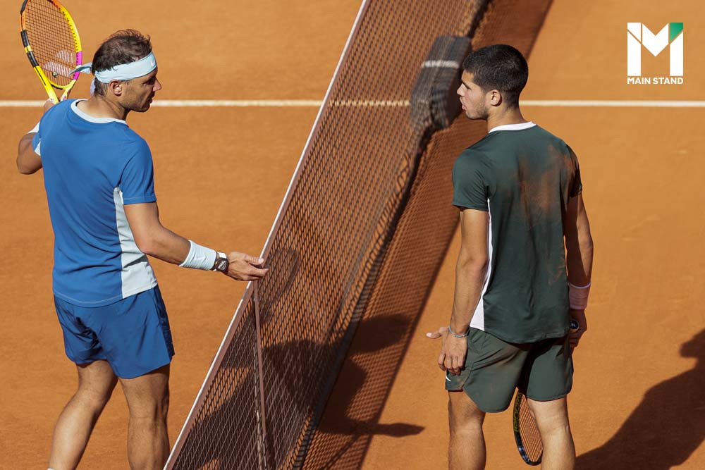 ในทัวร์นาเมนต์ มาดริด โอเพ่น ที่ผ่านมา ฟ้าบันดาลให้ อัลคาราซ จับฉลากเข้ามาดวลกับ ราฟาเอล นาดาล ในรอบ 8 คนสุดท้าย ก่อนสิ่งที่ อัลคาราซ เชื่อมั่นมาเสมอว่าเขามีไม่แพ้ใครคือ "ความมั่นใจ" จะบังเกิดผล อัลคาราซ ใช้ความดุดันไล่เอาชนะ นาดาล "บนคอร์ดดิน" ที่เป็นคอร์ดถนัดของเขาด้วยสกอร์ 2-1 เซต 6-2, 1-6 และ 6-3