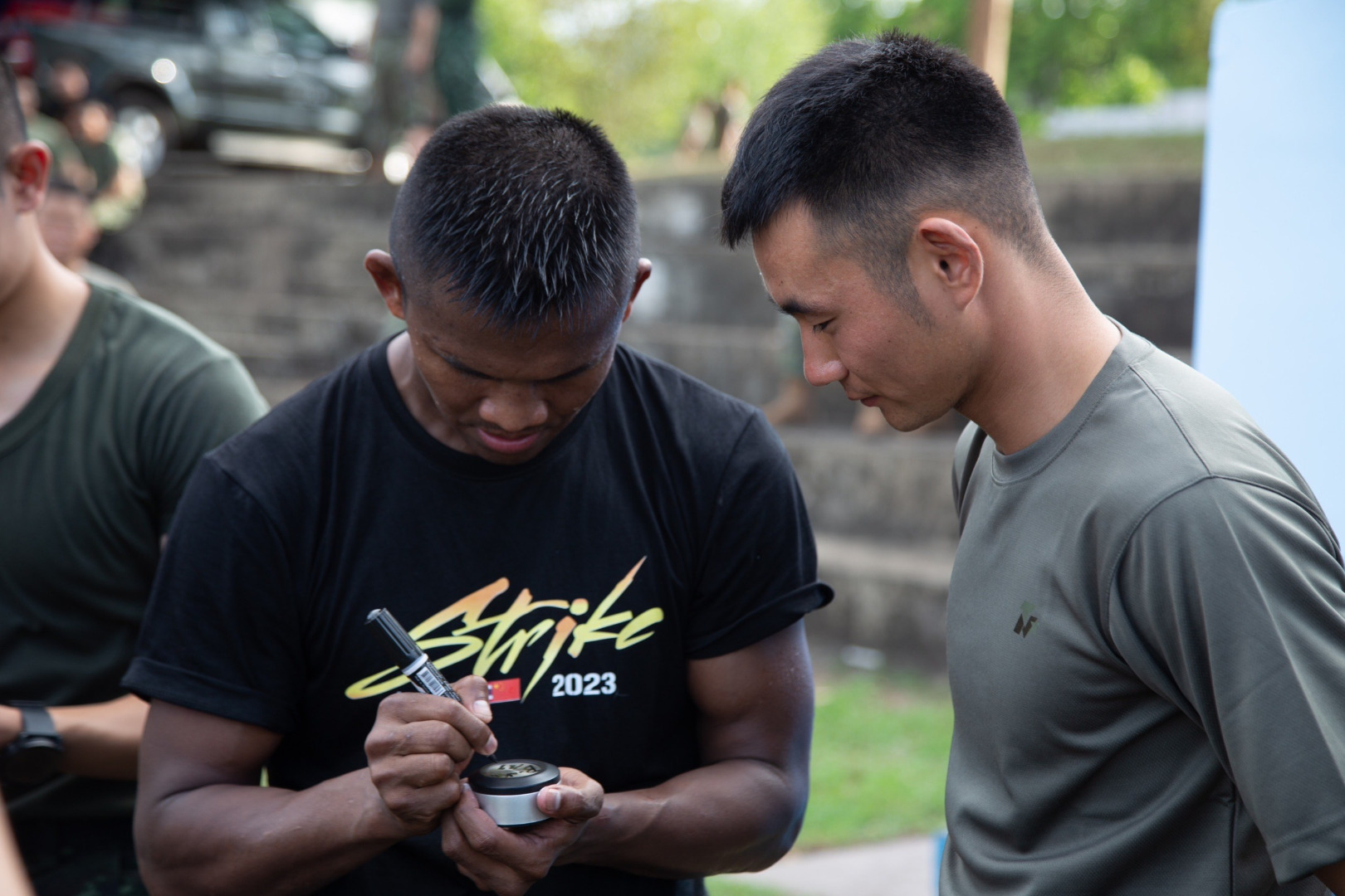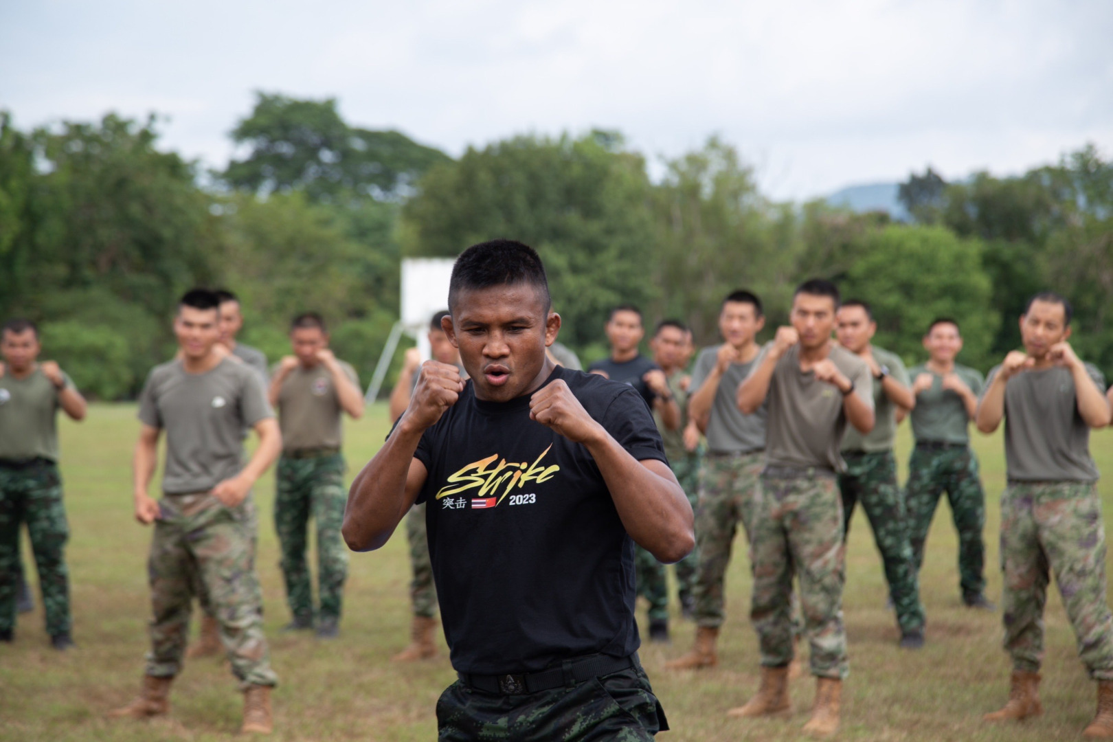 "ดำดอทคอม" บัวขาว บัญชาเมฆ นักชกมหาชนขวัญใจชาวไทย ที่มีตำแหน่งทางทหารคือ ร้อยโทสมบัติ บัญชาเมฆ ได้เข้าร่วมฝึกซ้อม STRIKE 2023 การใช้อาวุธหน่วยรบพิเศษไทย-จีน ที่กรมรบพิเศษที่ 4 ค่ายสฤษดิ์เสนา จังหวัดพิษณุโลก