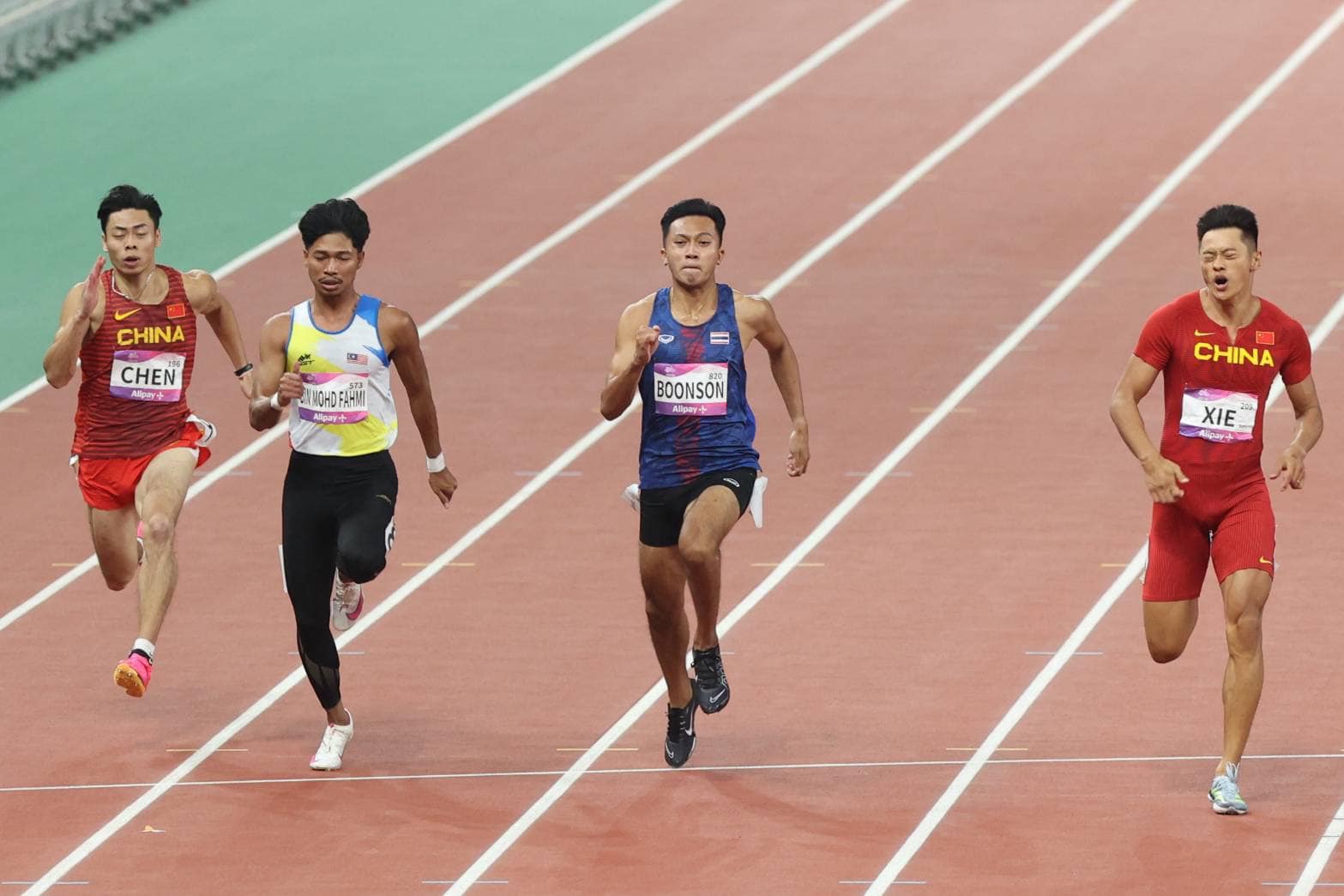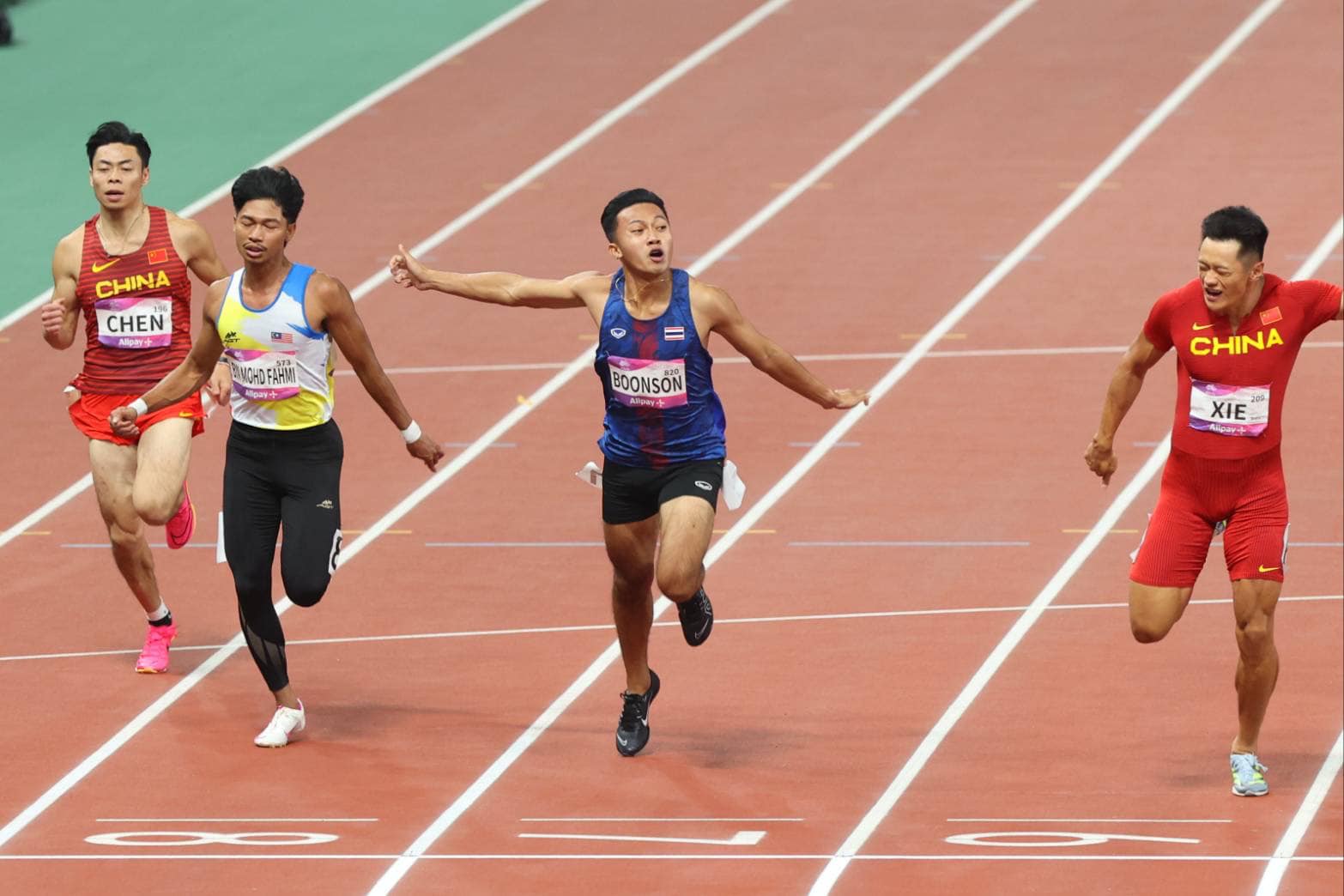 สุดยอดแล้ว!!! "บิว ภูริพล" คว้าเหรียญเงิน วิ่ง 100 เมตรชาย เอเชียนเกมส์ 2022วิ่ง 100 เมตรเอเชียนเกมส์ 2023 รอบชิงชนะเลิศ หนุ่มไทยทะลุเข้ามาสู่รอบชิงฯได้ 2 คน คือ "ต้า" สรอรรถ ดาบบัง และ "บิว" ภูริพล บุญสอน