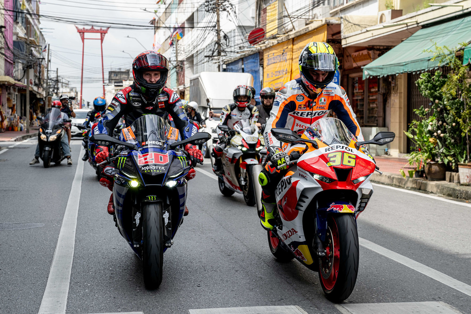 ดอร์น่า เผยภาพชุดสุดอลัง นำทัพนักบิดโมโตจีพีชื่อดัง “กวาร์ตาราโร-มอร์บิเดลลี่-เมียร์” ควง 3 นักบิดไทย “ก้อง-ก๊องส์-ไอเดีย” ถ่ายทำวีดีโอประชาสัมพันธ์ประเทศไทย ชูความสวยงามรอบเกาะรัตนโกสินทร์ โลหะปราสาท วัดราชนัดดาฯ ชมวิวมุมสูงของกรุงเทพในเขตพระนคร ขี่รถแข่งตัวแรง เที่ยวชมถนนราชดำเนิน-เสาชิงช้า ก่อนส่งท้ายสู่กิจกรรม Pre-Event ผัดไทยจีพี ซอฟต์พาวเวอร์สตรีทฟู้ด เชื่อมโยงวัฒนธรรมอาหารกับการท่องเที่ยวและกีฬาอย่างลงตัว