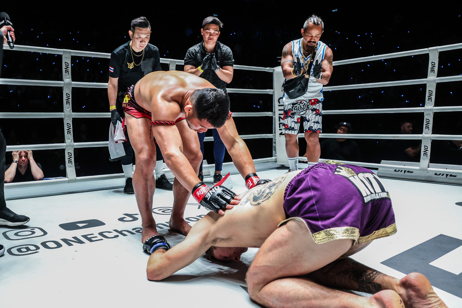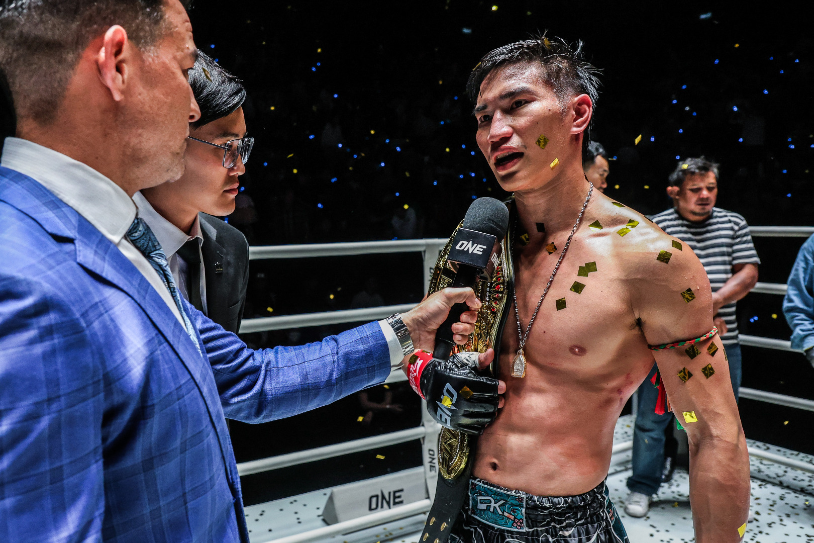 เร้าใจส่งท้ายปี! "ตะวันฉาย, พระจันทร์ฉาย, เพชรจีจ้า" เข็มขัดคาดเอว ศึก ONE ลุมพินี 46ศึก ONE ลุมพินี 46 ระเบิดความมันสุดยิ่งใหญ่สมเป็นรายการเดือดส่งท้ายปีให้แฟนกีฬาต่อสู้ได้ลุ้นเชียร์ระทึกตลอดทั้งการแข่งขัน