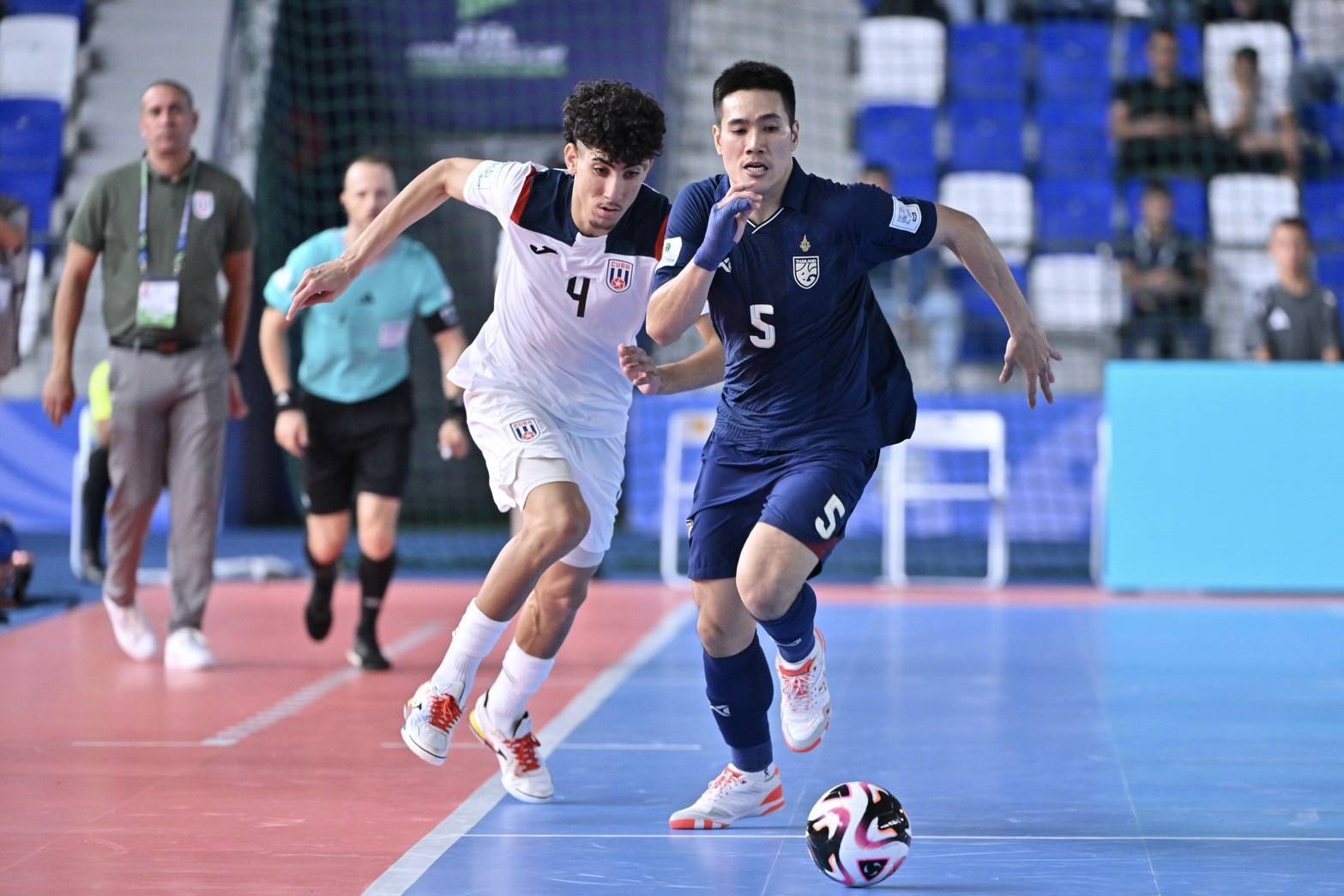ผลบอล ฟุตซอลโลก 2024 : โต๊ะเล็กช้างศึก ถล่ม คิวบา 10-5 การันตีลิ่วน็อกเอาต์การแข่งขัน FIFA Futsal World Cup 2024 กลุ่มบี นัดที่สอง ฟุตซอลไทย ที่รั้งอันดับ 9 ของโลก มี 3 คะแนน จากการลงสนาม 1 นัด