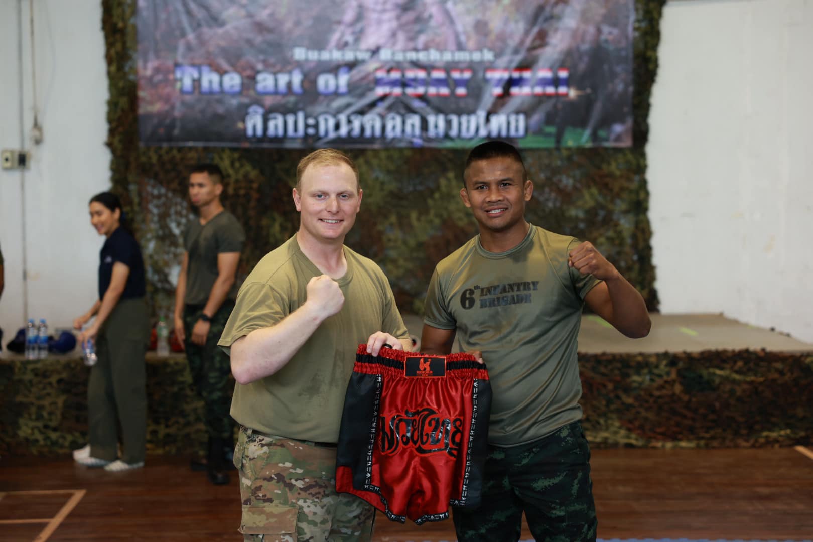สุดยอดนักสู้แห่งยุค บัวขาว บัญชาเมฆ และ ซุปเปอร์บอน สิงห์มาวิน จับมือกันถ่ายทอดศาสตร์และศิลป์ของมวยไทยให้แก่ทหารสหรัฐฯ ที่เข้าร่วมการฝึกร่วมผสม Cobra Gold 2025 เสริมสร้างความแข็งแกร่ง พร้อมสานสัมพันธ์มิตรภาพระหว่างกองทัพ