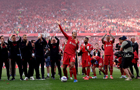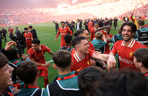 ภาพบรรยากาศหลังเกม ลิเวอร์พูล ผงาดคว้าแชมป์พรีเมียร์ลีก ฤดูกาล 2024-25"หงส์แดง" ลิเวอร์พูล การันตีแชมป์พรีเมียร์ลีก ได้สำเร็จหลังเปิดบ้านถล่ม สเปอร์ส ไปแบบขาดลอย 5-1 หยิบสามแต้มสำคัญส่งพวกเขาเป็นแชมป์ลีกสูงสุดสมัยที่ 20 ได้สำเร็จ