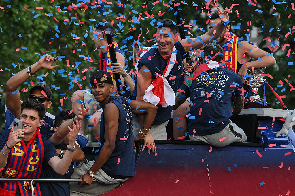 แห่ก่อนไม่รอปิดซีซัน! บาร์เซโลนา ขึ้นรถบัสฉลองคว้า 3 แชมป์สุดยิ่งใหญ่บาร์เซโลนา จัดขบวนพาเหรดแห่ฉลองแชมป์อย่างยิ่งใหญ่ หลังคว้า 3 แชมป์ในประเทศ ฤดูกาล 2024/25 ได้แก่ ลา ลีกา, โกปา เดล เรย์ และ สแปนิช ซูเปอร์ คัพ