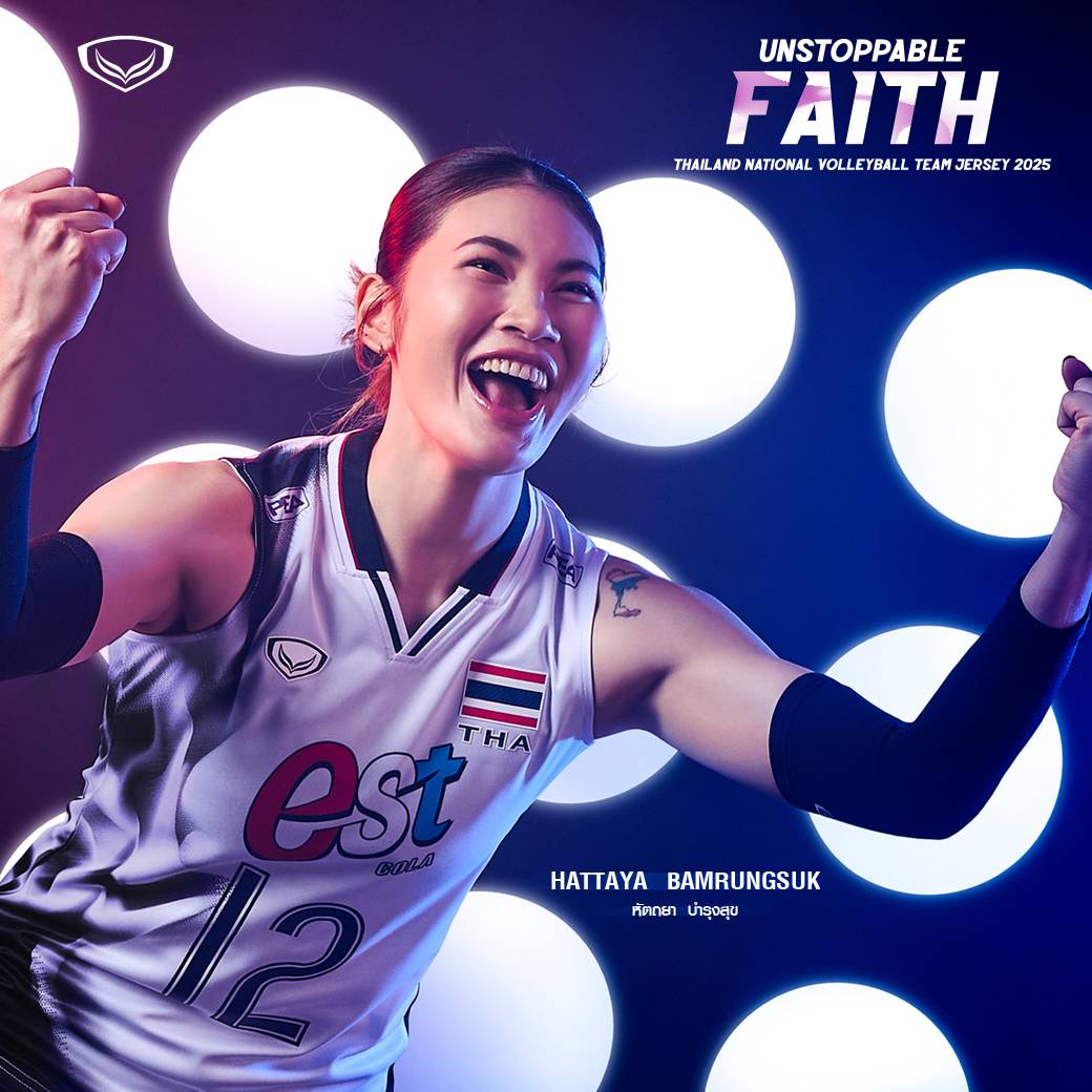 "แกรนด์สปอร์ต" เปิดตัวชุดแข่งขันวอลเลย์บอลทีมชาติไทยปี 2025 ภายใต้แนวคิด "Unstoppable Faith...ศรัทธาที่ไม่อาจหยุดยั้ง" มีลวดลาย "ควัน" บนตัวเสื้อเป็นสัญลักษณ์แทนความศรัทธา ความเชื่อมั่น เนื้อผ้า Micro Lite Recycle เป็นมิตรต่อสิ่งแวดล้อม