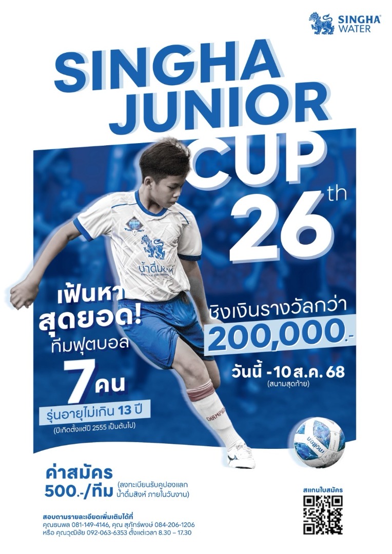 เตรียมฟาดแข้ง! "สิงห์ จูเนียร์ คัพ ครั้งที่ 26" ศึกฟุตบอลเยาวชน U-13