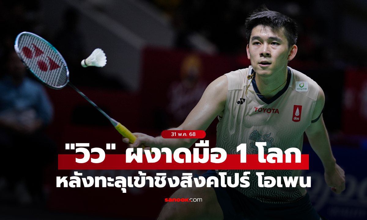 จารึกประวัติศาสตร์! "วิว กุลวุฒิ" ขึ้นมือ 1 โลก หลังเข้าชิงแบดมินตันสิงคโปร์ โอเพน