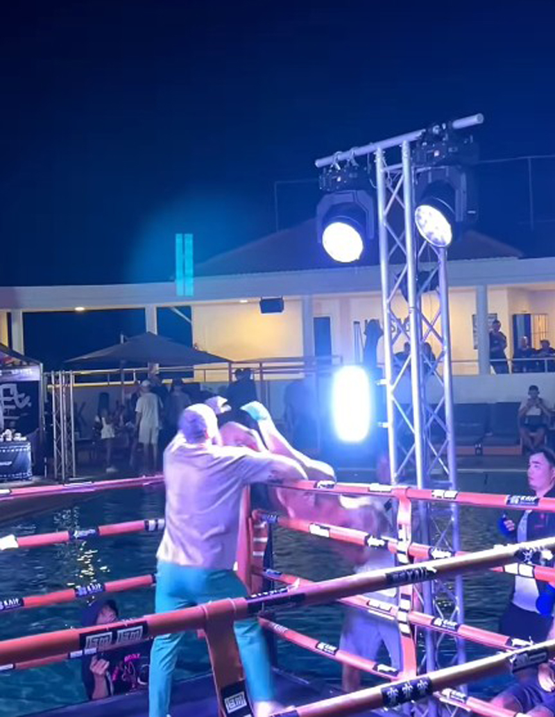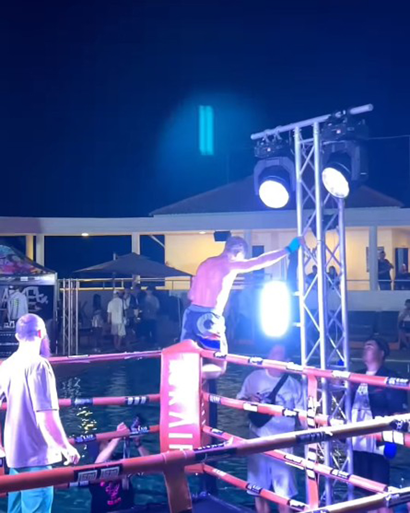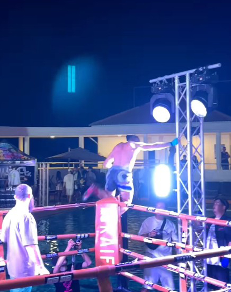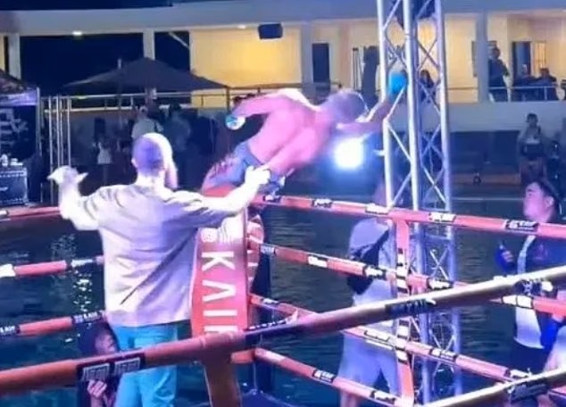 โดย นักสู้วัย 27 ปี เป็นฝ่ายคว้าชัยได้บนสังเวียน ก่อนเตรียมฉลองชัยด้วยการปีนขึ้นไปที่มุมเวที แต่กลับเจอเหตุช็อกเมื่อมือที่ไปจับเสาไฟ และโดนไฟดูดจนหมดสติหล่นลงมากองบนพื้น