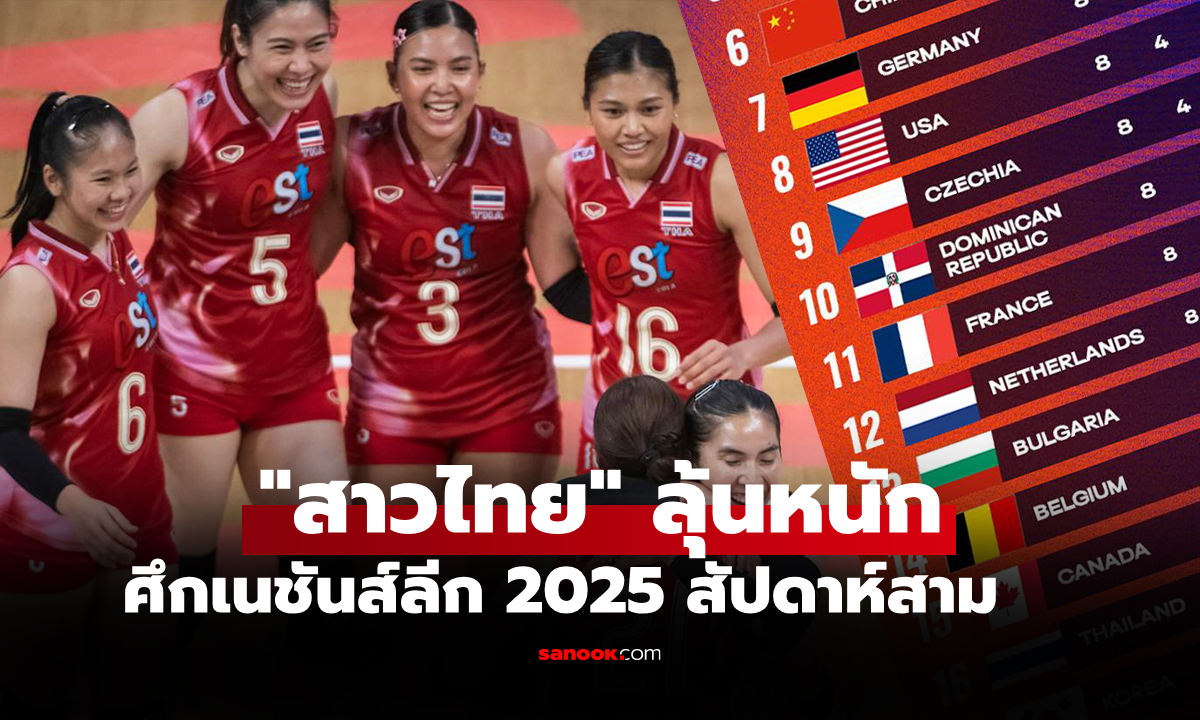 อันดับหล่น! ตารางคะแนน "สาวไทย" ศึกวอลเลย์บอลหญิง เนชั่นส์ลีก 2025