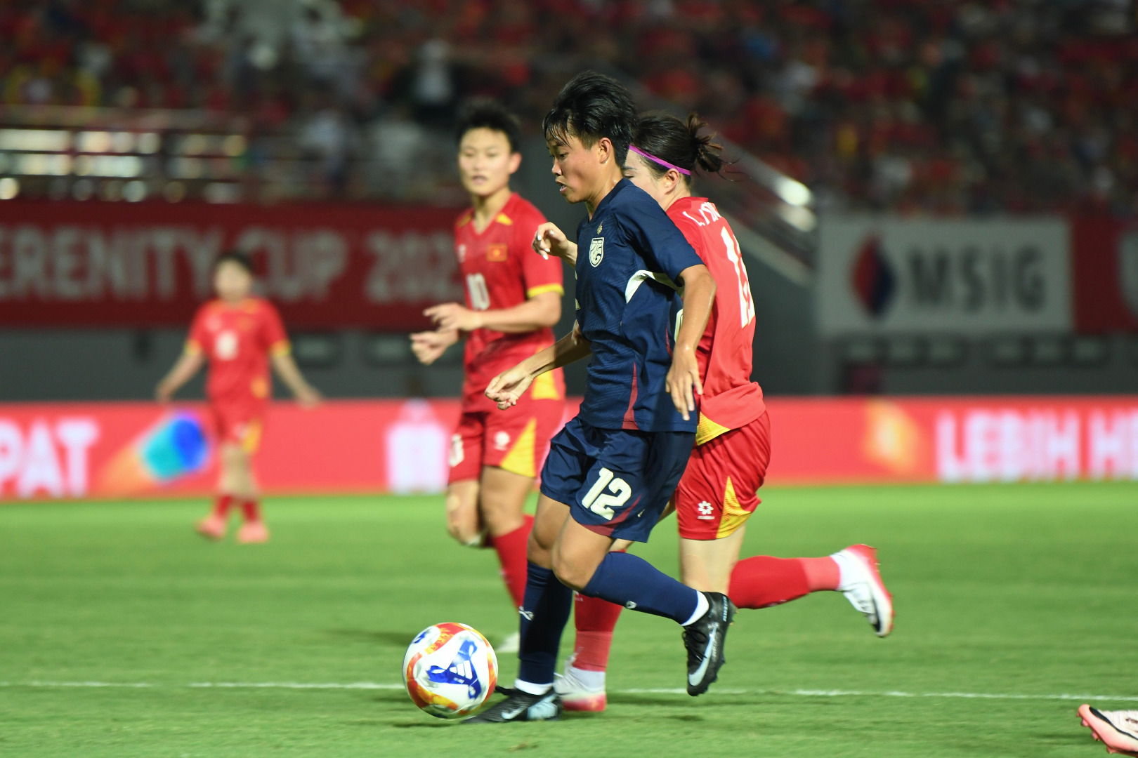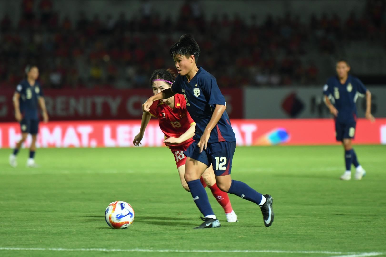 วันที่ 12 สิงหาคม 2568 เวลา 19:30 น. ณ ลัช ไช สเตเดียม การแข่งขันฟุตบอลหญิงชิงแชมป์อาเซียน รอบแบ่งกลุ่ม กลุ่มเอ นัดที่สาม ทีมชาติไทย อันดับ 53 ของโลก ลงสนาม พบกับ ทีมชาติเวียดนาม อันดับ 37 ของโลก