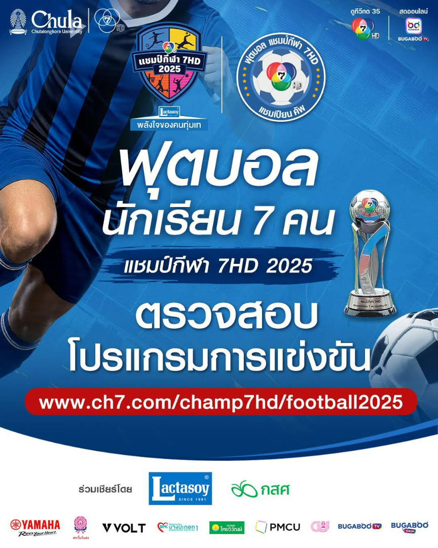 “ฟุตบอลนักเรียน 7 คน แชมป์กีฬา 7HD แชมเปียน คัพ 2025” สตาร์ทความมันนัดแรก รอบคัดเลือก 6 ต.ค.นี้สะเทือนวงการลูกหนังขาสั้น “ช่อง 7HD” พร้อมเปิดศึก “ฟุตบอลนักเรียน 7 คน แชมป์กีฬา 7HD แชมเปียน คัพ 2025” รอบคัดเลือก