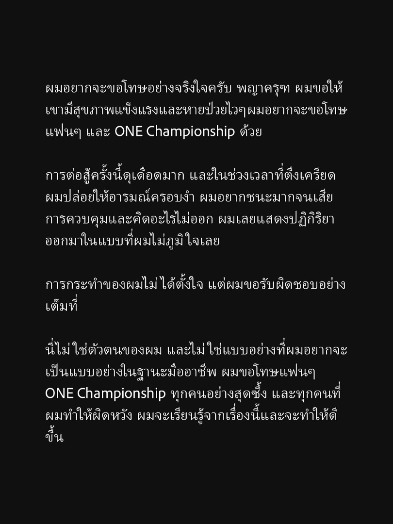 ขอจบดราม่า! "อับเดสซามี" ยกมือไหว้ขอโทษ "พญาครุฑ" หลังเตะตามน้ำ 2 ครั้งกลายเป็นประเด็นดราม่าทันทีกับการกระทำของ อับเดสซามี เรนิมี นักมวยชาวโมร็อกโกที่เตะตามน้ำใส่ พญาครุฑ เสือจันถกมวยไทย ในศึก ONE ลุมพินี 128 เมื่อคืนวันศุกร์ที่ 10 ตุลาคม ที่ผ่านมา