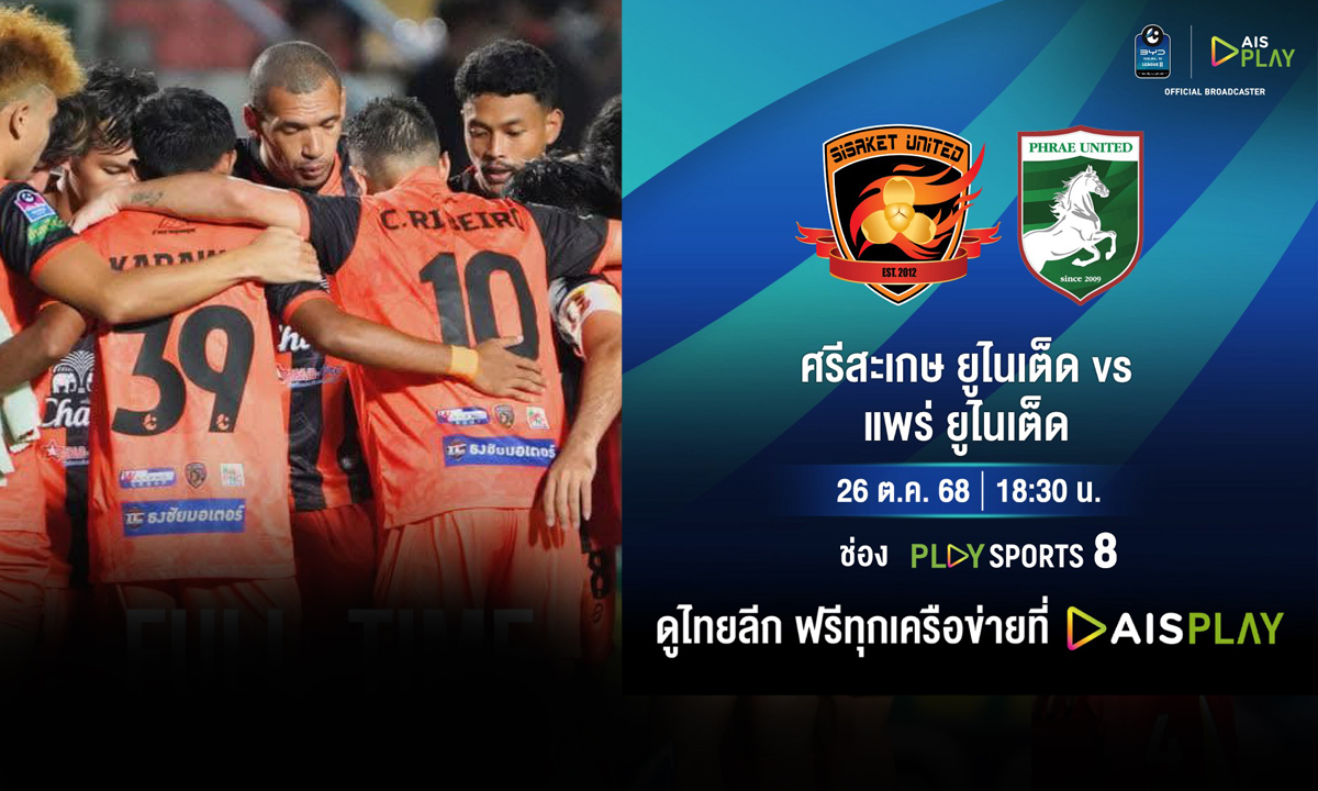ดูฟรี! "ศรีสะเกษ" วัดคม "แพร่" 2 ทีมลุ้นเลื่อนชั้นไทยลีก 2 ทาง AIS PLAY