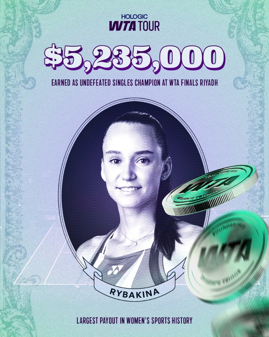 มากที่สุดในโลก! เปิดเงินรางวัล "ไรบาคิน่า" แชมป์เทนนิส ดับเบิลยูทีเอ ไฟนอลส์ 2025