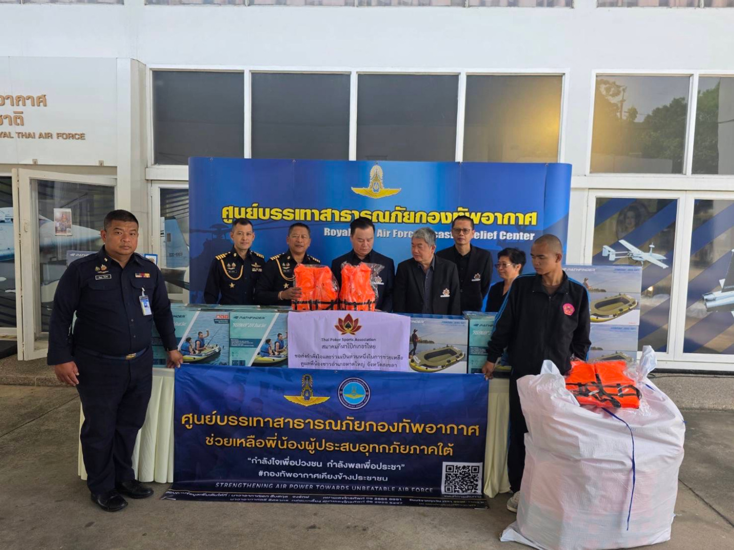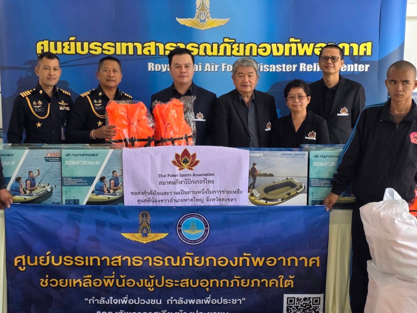"สมาคมกีฬาโป๊กเกอร์ไทย" ส่งเรือยาง–เสื้อชูชีพ ช่วยผู้ประสบอุทกภัยภาคใต้วันที่ 27 พฤศจิกายน 2568 นายธนา จุลพรรณศักดิ์ นายกสมาคมกีฬาโป๊กเกอร์ไทย พร้อมด้วย นายจิตรนรา นวรัตน์ เลขาธิการสมาคมฯ ได้มอบ “เรือยาง จำนวน 12 ลำ และเสื้อชูชีพ 50 ตัว”